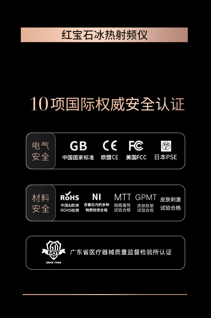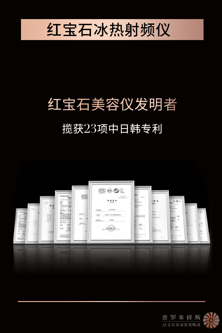 紅寶石冰熱射頻美容儀23項(xiàng)專利高奢的膚神器 發(fā)布日期:2023-08-28 閱讀量: 普羅米修斯美容儀紅寶石美容儀發(fā)明者這款紅寶石冰熱射頻美容儀不僅功能強(qiáng)大,外觀設(shè)計(jì)也是高奢感滿滿!它是國內(nèi)首個(gè)采用紅寶石導(dǎo)頭設(shè)計(jì),紅寶石鑲嵌散發(fā)出耀眼的光芒,讓你在使用的同時(shí),也能享受到奢華的感覺。紅寶石礦物晶體T然冰感擁有舒緩肌膚功效。無論是送禮還是自用,都是jue佳的選擇! 攬獲23項(xiàng)中日韓專利 背書強(qiáng)大這款美容儀擁有23項(xiàng)Z利技術(shù),每一個(gè)細(xì)節(jié)都經(jīng)過精心設(shè)計(jì)和研發(fā),確保用戶能夠得到更佳的美容效果。無論是J致肌膚、D化S紋還是提拉S形,它都能滿足你的需求,讓你擁有令人艷羨的肌膚! 10項(xiàng)國際權(quán)威安全認(rèn)證紅寶石冰熱射頻美容儀通過10項(xiàng)國際全威安全認(rèn)證,為你的美麗保駕護(hù)航;通過國內(nèi)外電氣安全、材料安全認(rèn)證,安全有保障;獲得廣東省Y療器械質(zhì)量監(jiān)督檢驗(yàn)所認(rèn)證,紅寶石冰熱射頻美容儀的安全性與質(zhì)量得到了充分保障,讓你使用時(shí)更加安心無憂!不僅如此,我們還對(duì)產(chǎn)品進(jìn)行了嚴(yán)格的質(zhì)檢,確保每一臺(tái)產(chǎn)品都經(jīng)過合格的檢測。