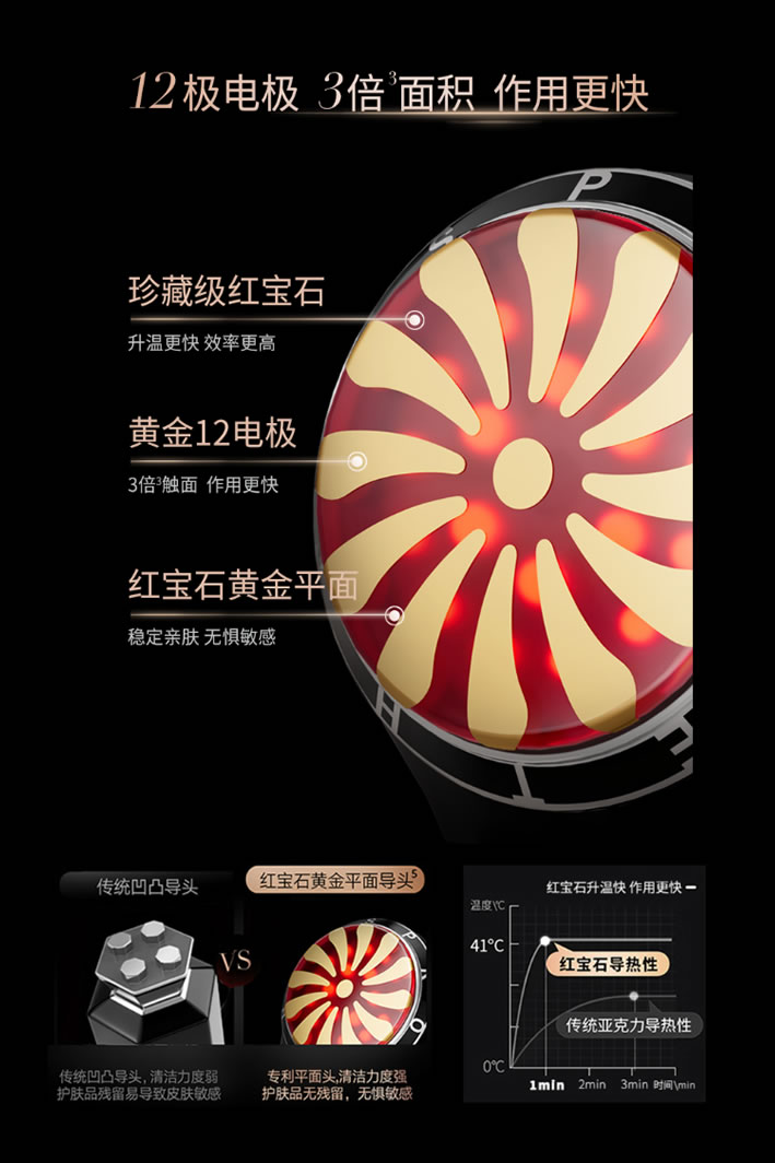紅寶石冰熱射頻美容儀 緊致淡紋快3倍 發(fā)布日期:2023-08-29 閱讀量: 紅寶石冰熱射頻美容儀 緊致淡紋快3倍 紅寶石冰熱射頻美容儀自上市以來(lái),收到不少用戶的積極反饋,緊致淡紋效果口碑都很好,不僅是它的功能強(qiáng)大,外觀設(shè)計(jì)也是高奢感滿滿!它是國(guó)內(nèi)首個(gè)采用紅寶石導(dǎo)頭設(shè)計(jì)的射頻類美容儀。 為什么說(shuō)它的緊致淡紋效果更快呢?1.先來(lái)看它的導(dǎo)頭結(jié)構(gòu),它的導(dǎo)頭由12片黃金電極和紅寶石組成,電極片更多更大,接觸面面能量更聚集;開(kāi)機(jī)上臉1分鐘即熱,刺激膠原更高效。2.黃金12電極相比傳統(tǒng)的美容儀3倍的肌膚接觸面使得作用面積更大,作用更快。3.紅寶石天然冰組成的黃金平面柔和穩(wěn)定親膚,無(wú)懼敏感,蓋章式上臉即刻修護(hù)表皮; 相比傳統(tǒng)的凹凸導(dǎo)頭,紅寶石冰熱射頻儀的優(yōu)勢(shì)已經(jīng)很明顯了,傳統(tǒng)的美容儀導(dǎo)頭因凹凸式平面,清潔度不夠徹底,且還會(huì)造成護(hù)膚品殘留易導(dǎo)致皮膚敏感。而且紅寶石的導(dǎo)熱性相比傳統(tǒng)的亞克力導(dǎo)熱性性能更好更穩(wěn)定,這里紅寶石天然冰的優(yōu)勢(shì)就顯現(xiàn)出來(lái)了。 紅寶石射頻美容儀效果也會(huì)因?yàn)椴煌w質(zhì)以及不同手法的人而有所區(qū)別,建議在官方護(hù)膚顧問(wèn)指導(dǎo)下使用,祝大家越變?cè)矫?,生活更精?