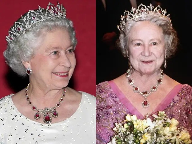 這是阿爾伯特親王為維多利亞女王制作的眾多珠寶之一,靈感來自維多利亞擁有的一系列印度珠寶,最初用蛋白石代替紅寶石,后來又增加了紅寶石。 這是英國女王伊麗莎白二世母親的最愛,王冠后來留給了伊麗莎白二世。女王不常佩戴這頂紅寶石王冠,她最常佩戴的是緬甸紅寶石王冠。
