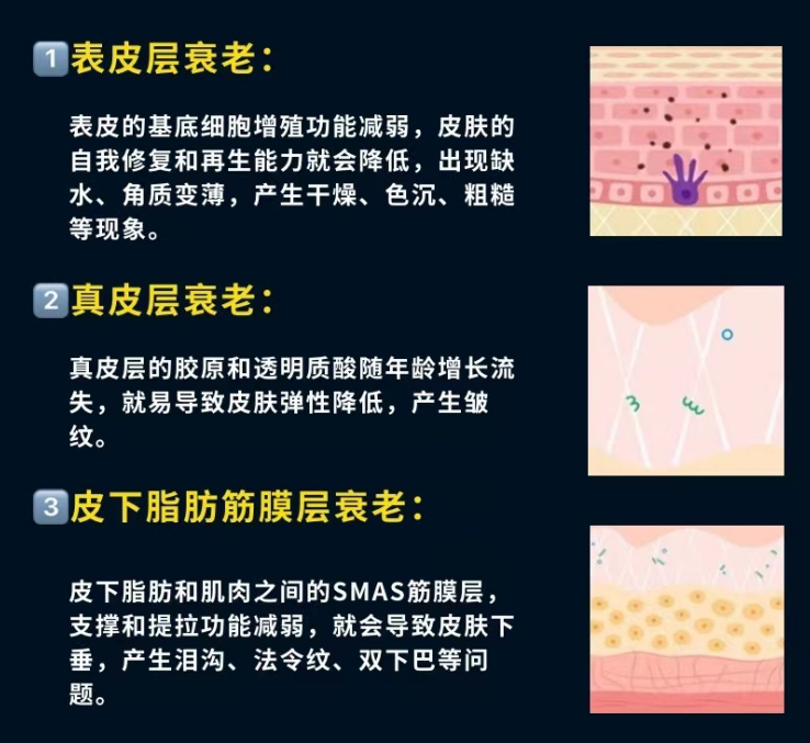 表皮的基底細(xì)胞增Z功能減弱,皮膚的自我X復(fù)和再生能力就會降低,出現(xiàn)缺水、角質(zhì)變薄,產(chǎn)生干燥、色沉、粗糙等現(xiàn)象。