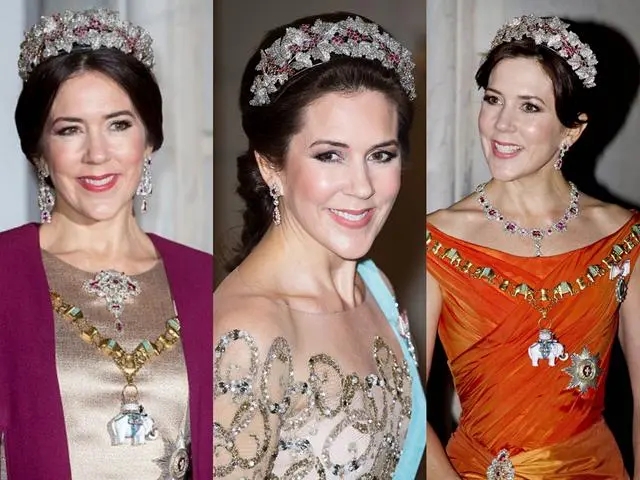 據(jù)說這頂王冠最早是在1804年由德茜蕾·克拉里,即未來的瑞典王后德茜蕾在拿破侖一世加冕禮上佩戴的。王冠已被多次修改,它最初是一組可以戴在頭發(fā)上的發(fā)梳,后來變成了戴在頭上的花環(huán)。瑞典公主英格麗德帶著這頂王冠嫁入了丹麥王室稱為丹麥王后,1947年,瑪格麗德王后給王冠增添了胸針,使頭飾更飽滿?,F(xiàn)在這頂紅寶石王冠的佩戴者瑪麗王儲妃請珠寶商修改了頭飾,使其更短且更圓潤。雖然王冠上鑲嵌的鉆石和紅寶石都不大,但數(shù)量龐大,而且造型很別致。