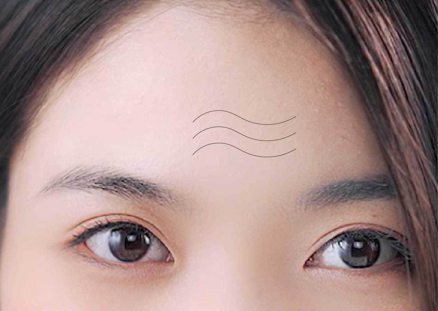 額頭的橫向皺紋,多為橫紋,眉毛揚(yáng)起或抬頭時(shí)更加明顯.